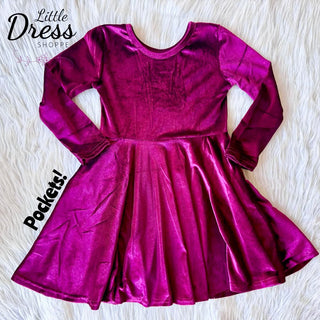Wine Velvet Twirly Dress