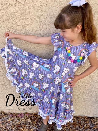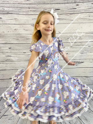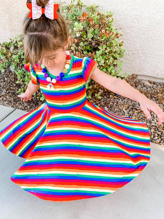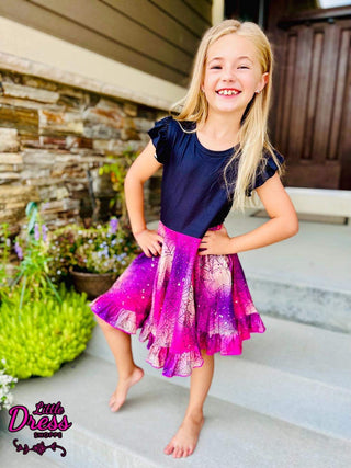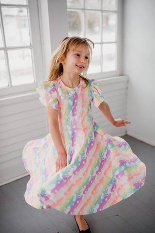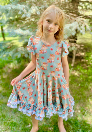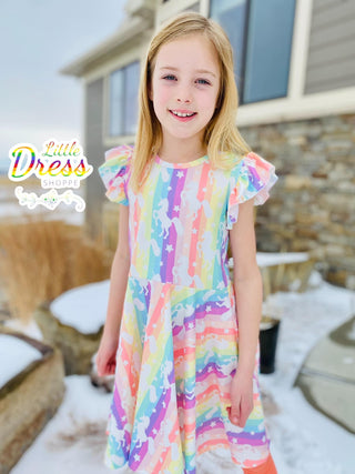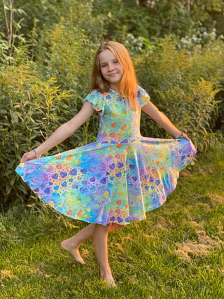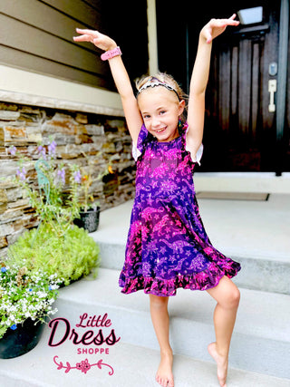 Our collections of buttery soft flutter sleeve dresses will for sure make your little one smile. Each of these dresses come with a full circle twirly skirt. Each dress is hand crafted with our super soft material. These dresses have no elastic so there will be no complaints about itchy skin. Guaranteed to be the dress your daughter wants to wear whenever she can!