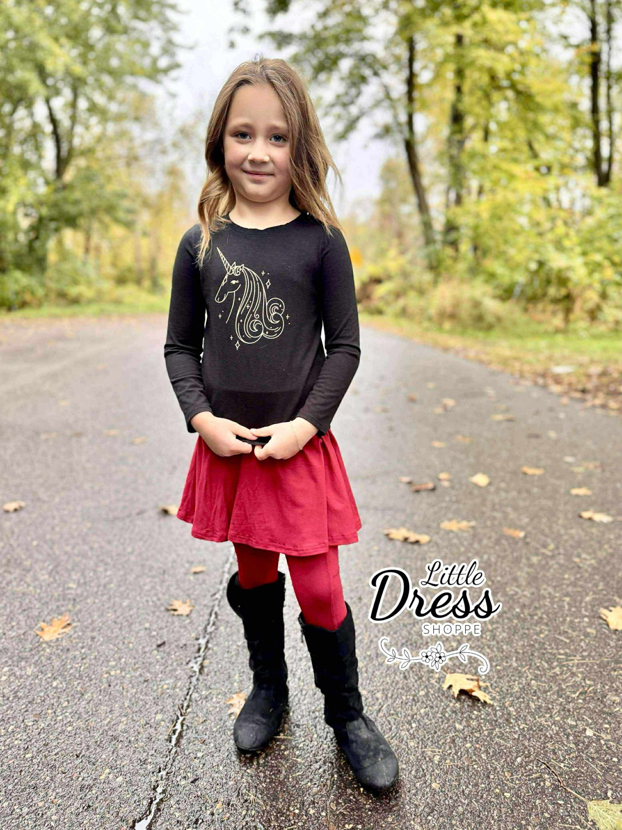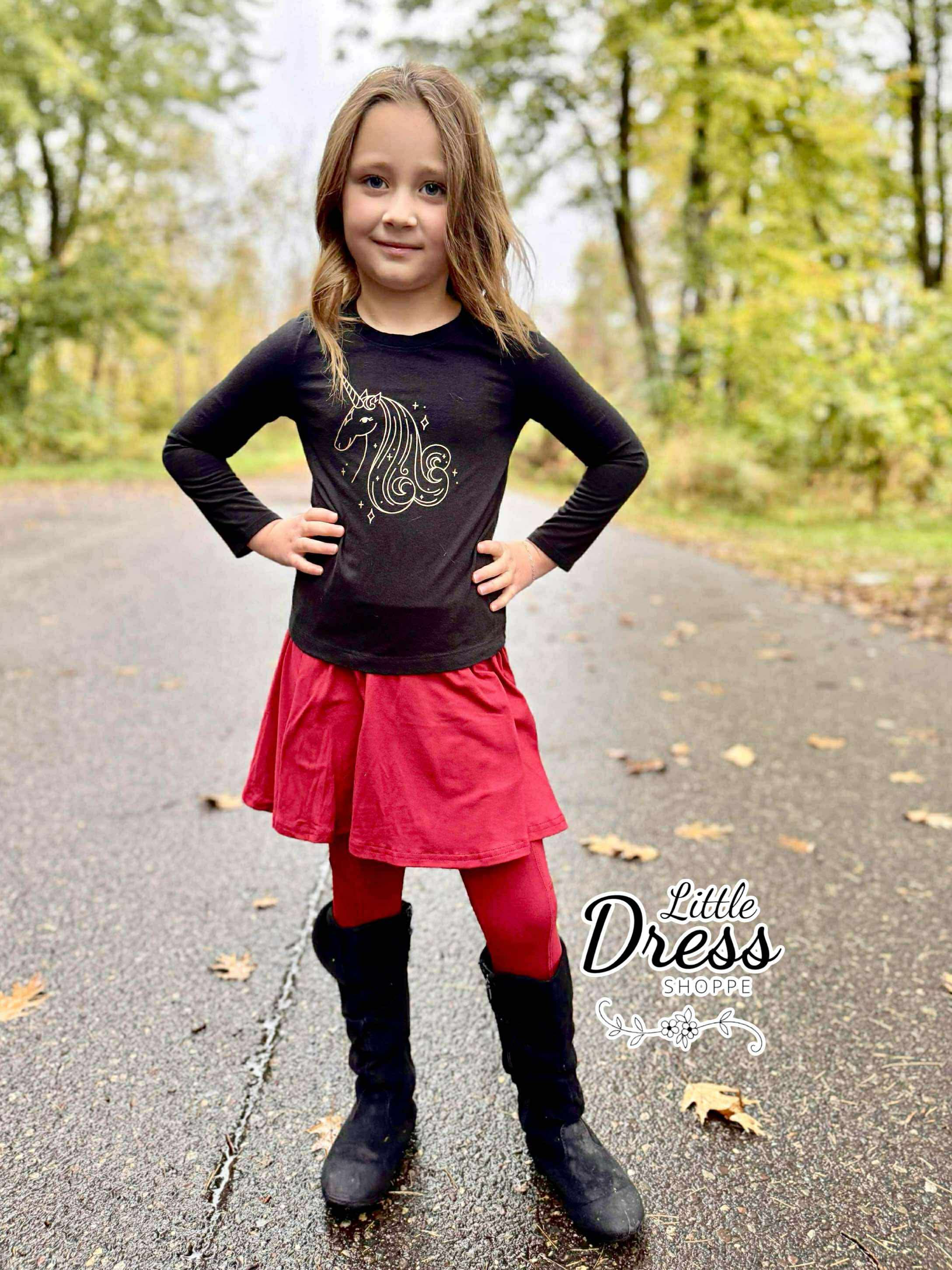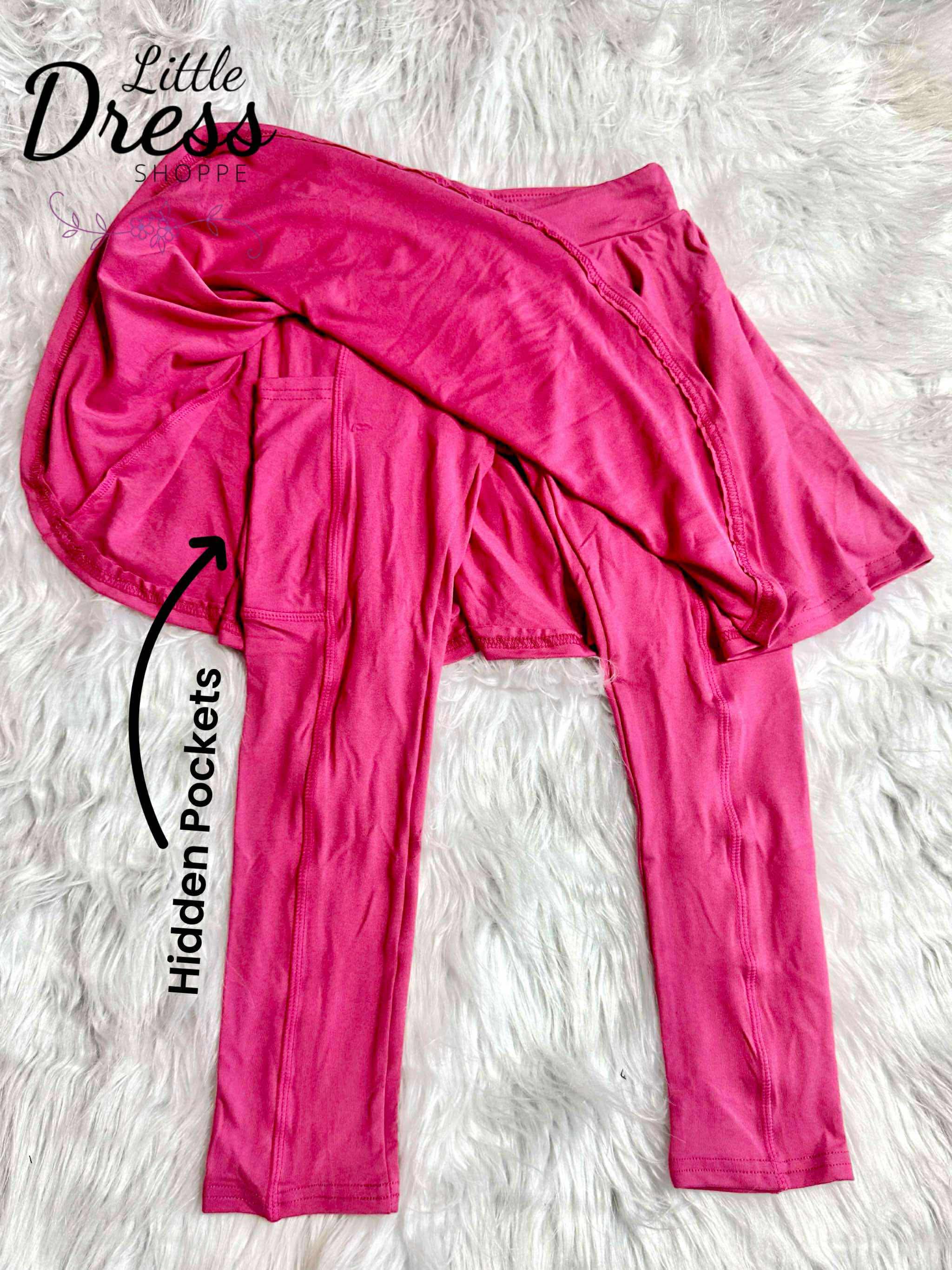 Skirted leggings in the same sizes as our leggings! These skirts have a full built in pair of leggings under the skirt. The leggings even have our regular pockets. Comes in sizes XS-XXL.